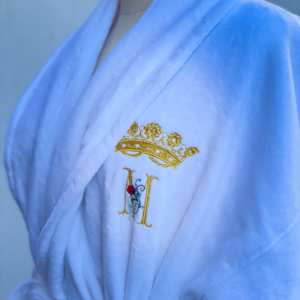 Halat de baie de lux din bumbac pakistanez cu guler șal cu cordon și 2 buzunare